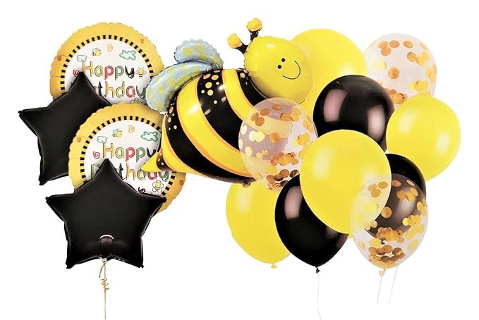 Bee Birthday Balloon Bouquet – Yellow & Black Party Decoration