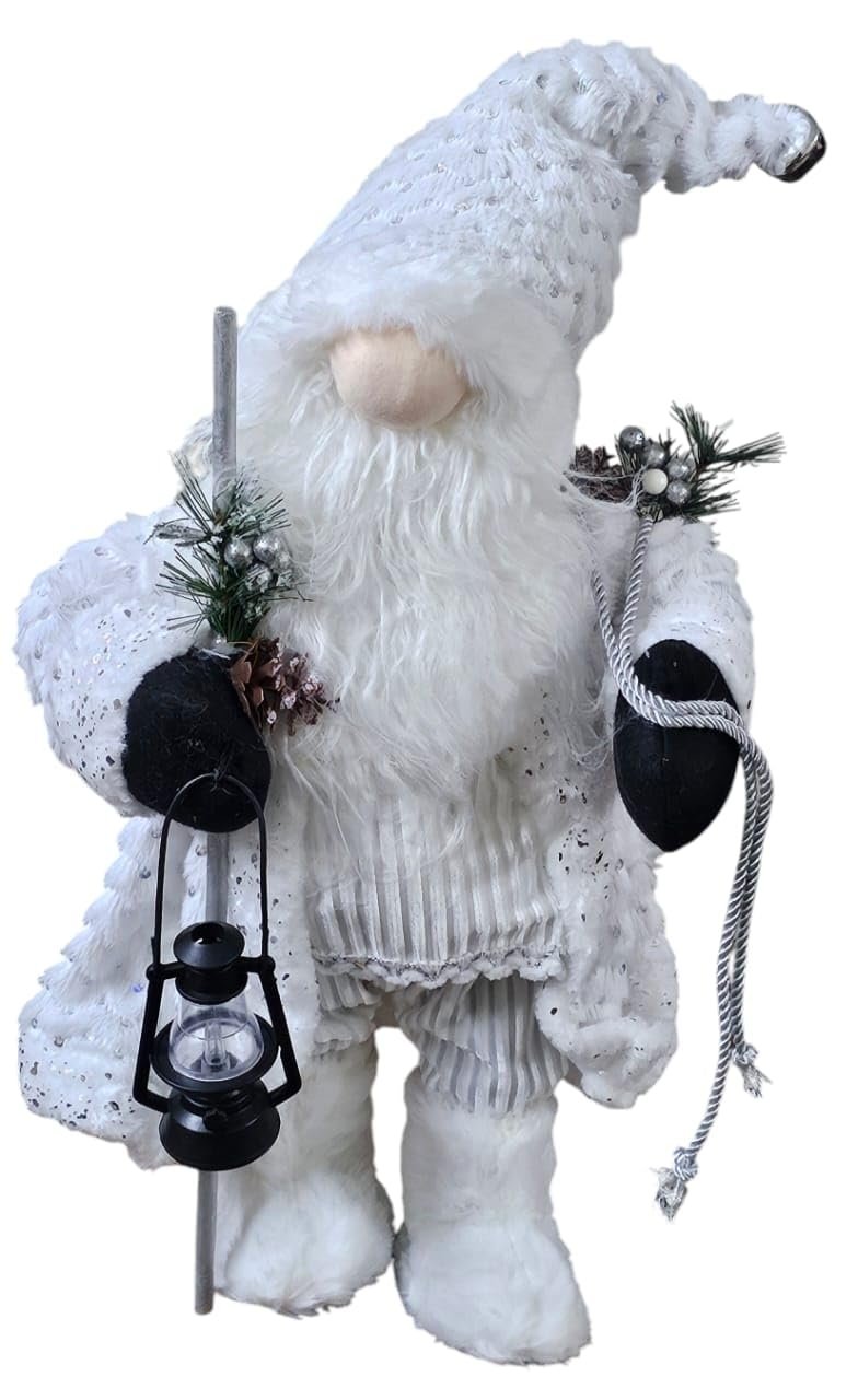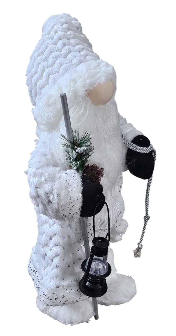 18" Elegant White Frost Standing Santa Claus with Lantern | Plush Gnome Christmas Decoration | Winter White Santa Figure for Tabletop, Tiered Tray, Home & Holiday Decor | Christmas Ornament Statue