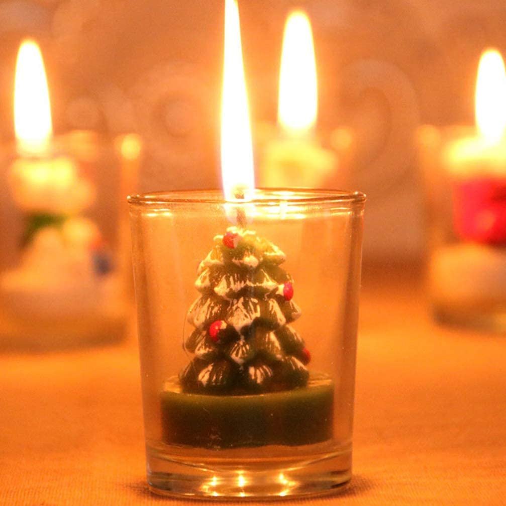 4Pcs Christmas Tea Lights Candles Snowman Santa Tree Shape Cup Candle Decorative Candle Decoration Church Candles Ball Candles Ornaments (4Pcs Christmas Glass Candle Candles)