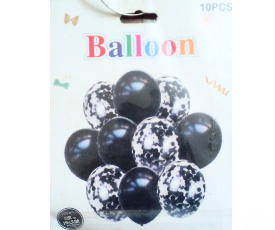 - 🖤 10pcs black & white balloon set with confetti design