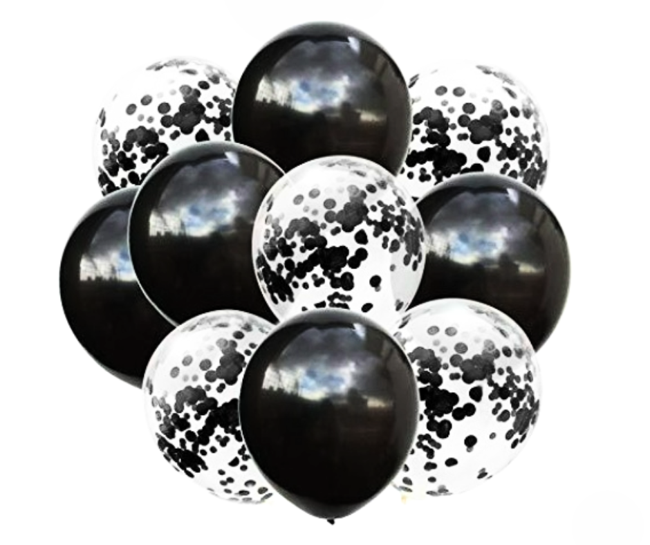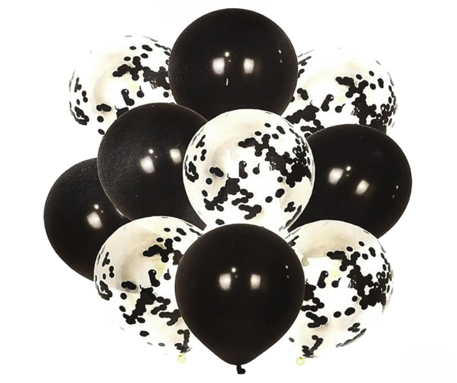 - 🎈 Includes solid black & black confetti balloons