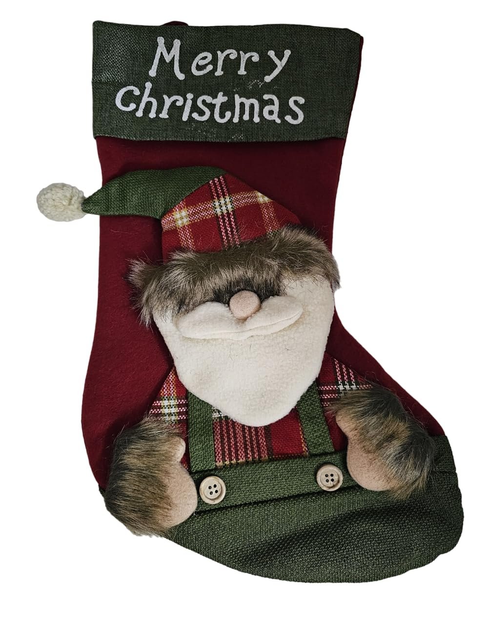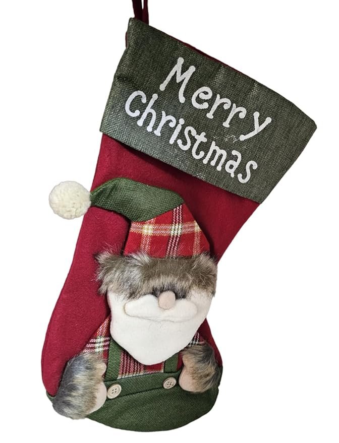 - 🎅 Premium Christmas Stocking: High-quality hanging stocking with adorable plush Santa design and “Merry Christmas” embroidery, perfect for holiday décor.