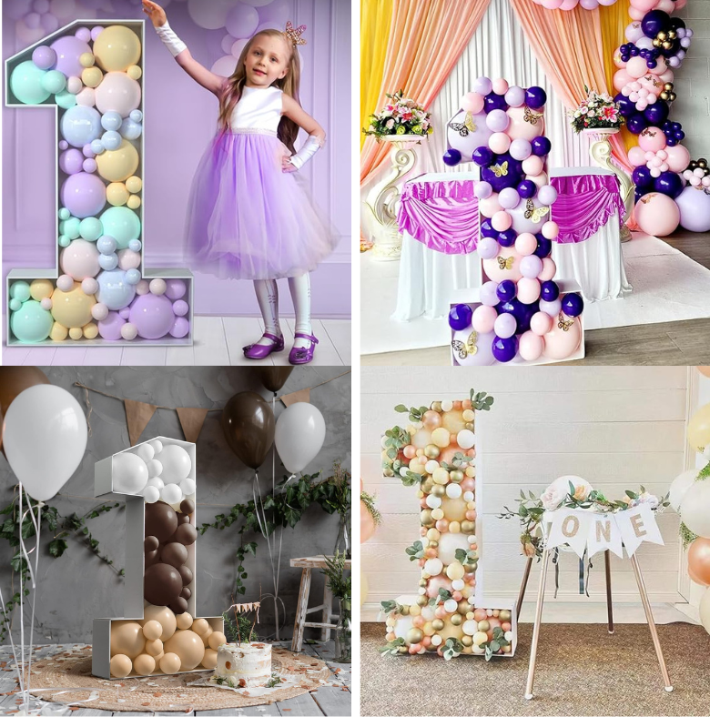 Customize your theme with different colours, neon text, numeric lights (1–50), balloon arch size, props, and surprise add-ons.