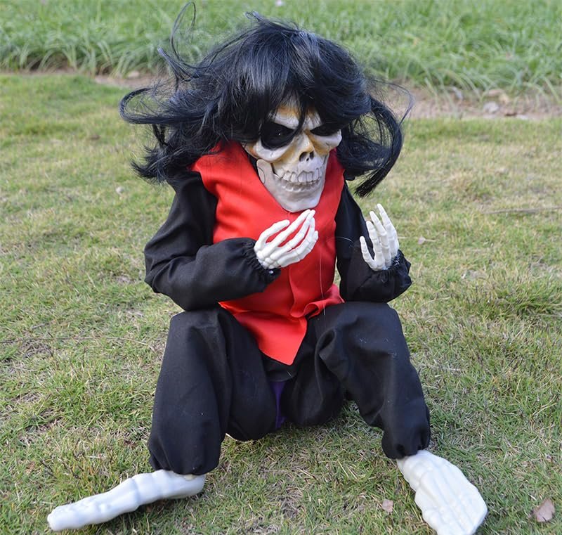 - Halloween Horror Decoration Electric Crying Skeleton Ghost Eyes Glowing Scream Tricky Props Haunted House Bar Garden Party Decor