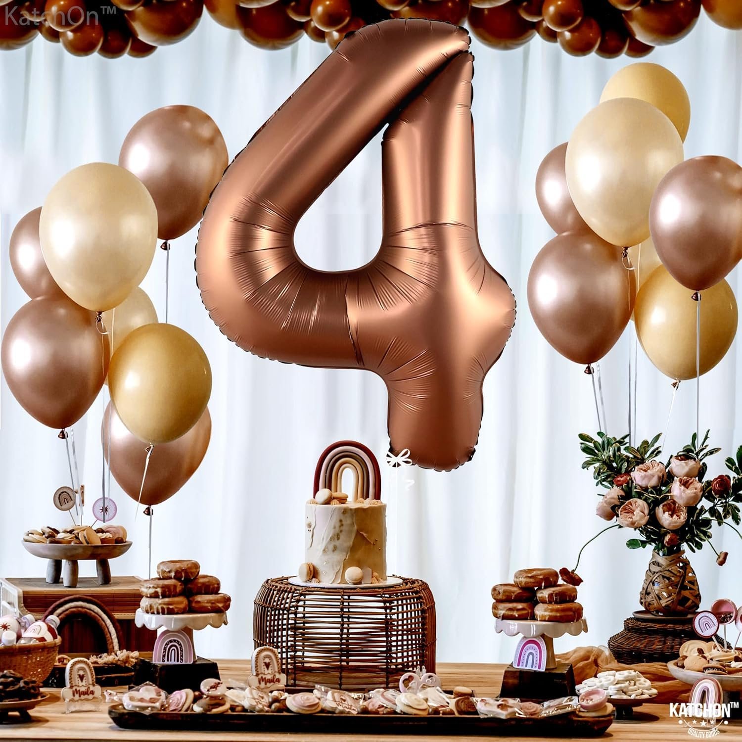 - VERSATILE PARTY DECOR: Ideal for 4th birthday parties, anniversaries, milestone celebrations, or any event requiring the number 4 as part of brown-themed decorations