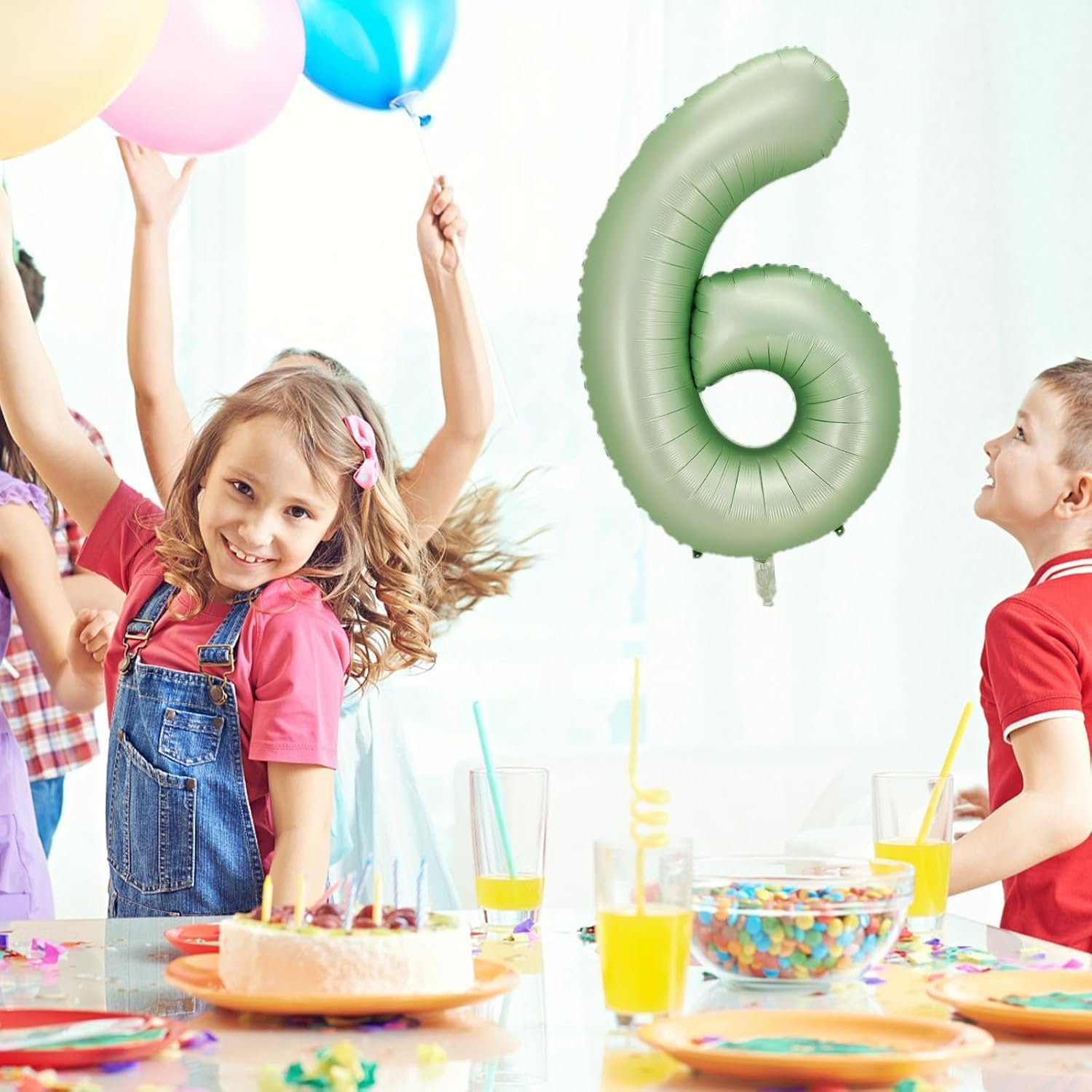- LARGE SIZE BALLOON: 32 inch (approximately 81 cm) giant foil number 6 balloon in elegant pastel olive green colour, perfect for creating eye-catching birthday and anniversary displays