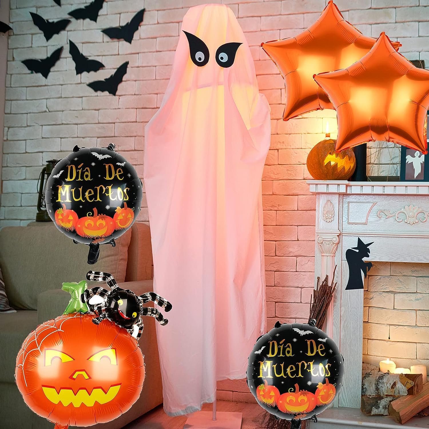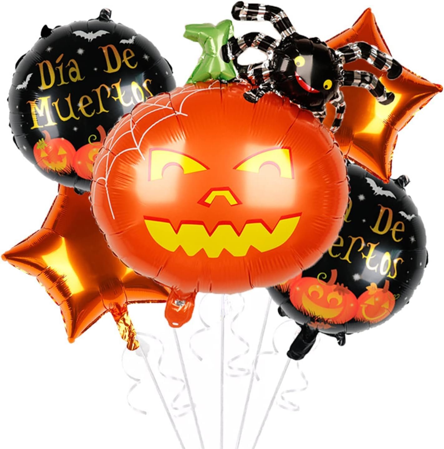 Halloween Balloons Decorations | Jack o Lantern Pumpkin Spider Balloon Decor in Orange & Black | Perfect Supplies for Kids Happy Halloween Party | Mylar Foil Helium Balloons Set | Halloween Decoration