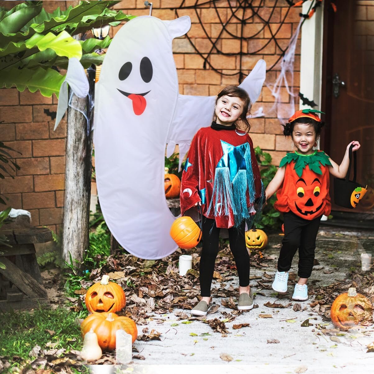 - 🎃【SUPER LARGE SIZE WITH HANGING LANYARD, NO ASSEMBLY REQUIRED:】: Compared with others, this large Halloween ghost is 59x59inch when spread out, and the string is easy for you to hang it anywhere you want to hold, no assembly required or attached swivel needed. Designed to be a ghost with cute ghostly face that especially suitable for families with children.