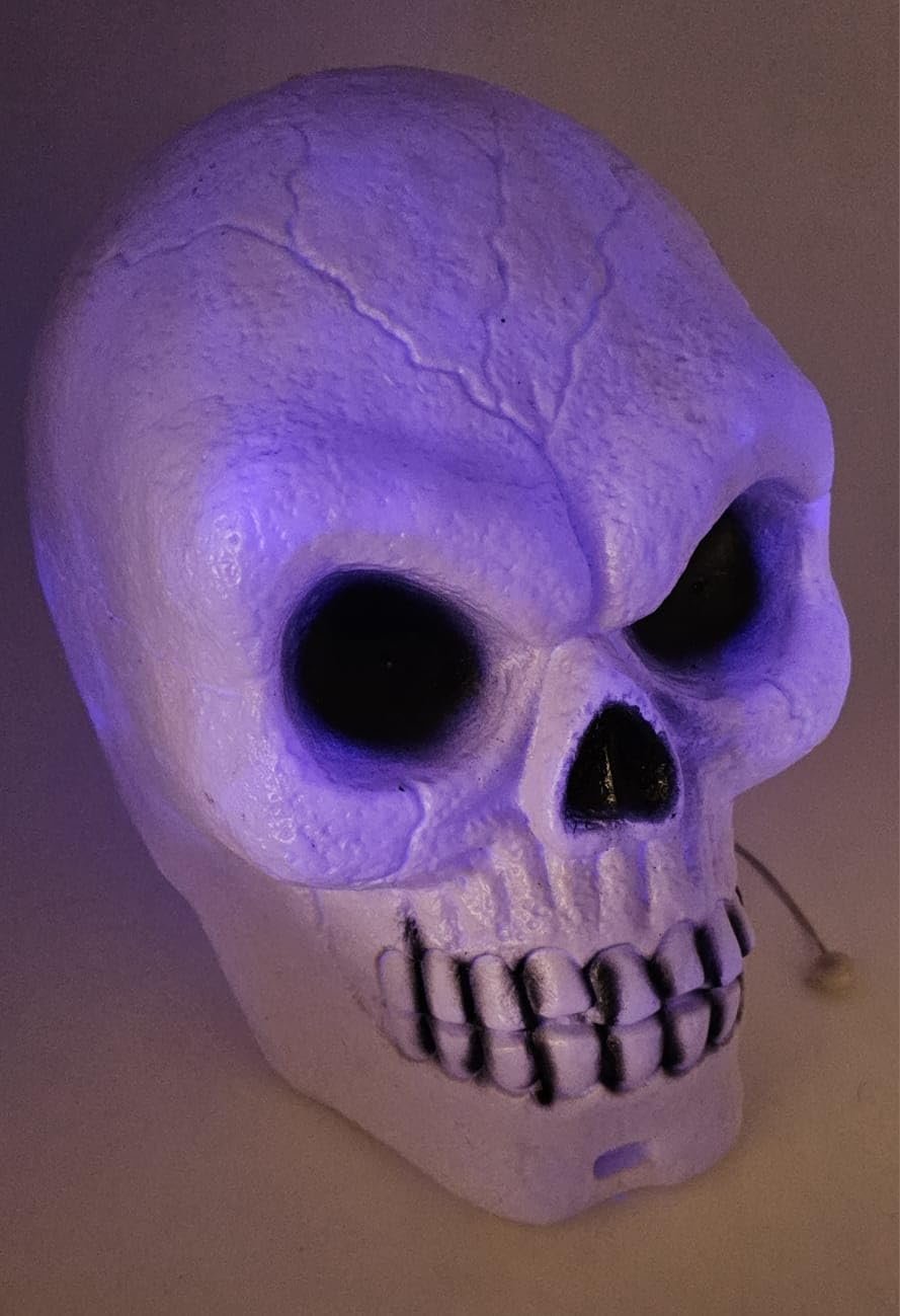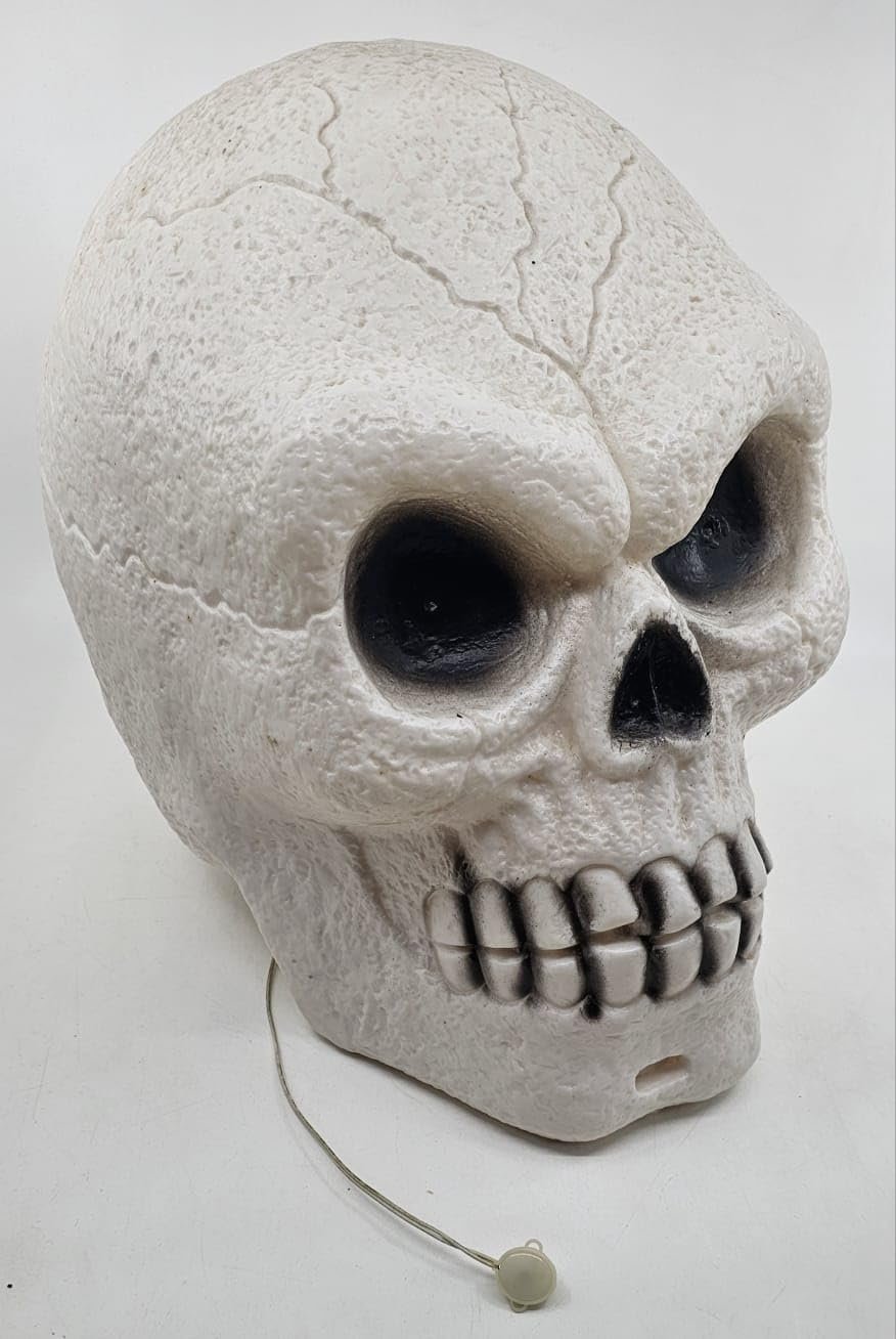 - The large skull head prop lights up with LED effect from the inside. A unique and spooky effect, our Light Up Skull is sound activated! Approx. 33cm tall – 3 x AA batteries (Battery not included)