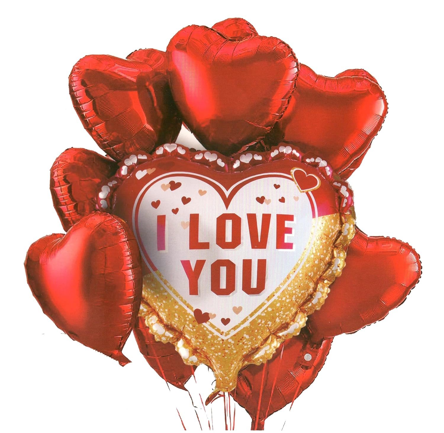 “I Love You” Heart Foil Balloon Bouquet | Red & Gold Love Balloons