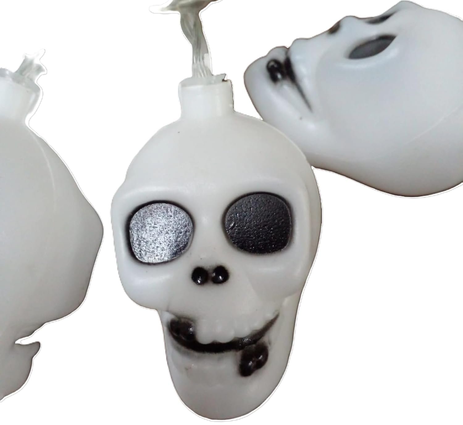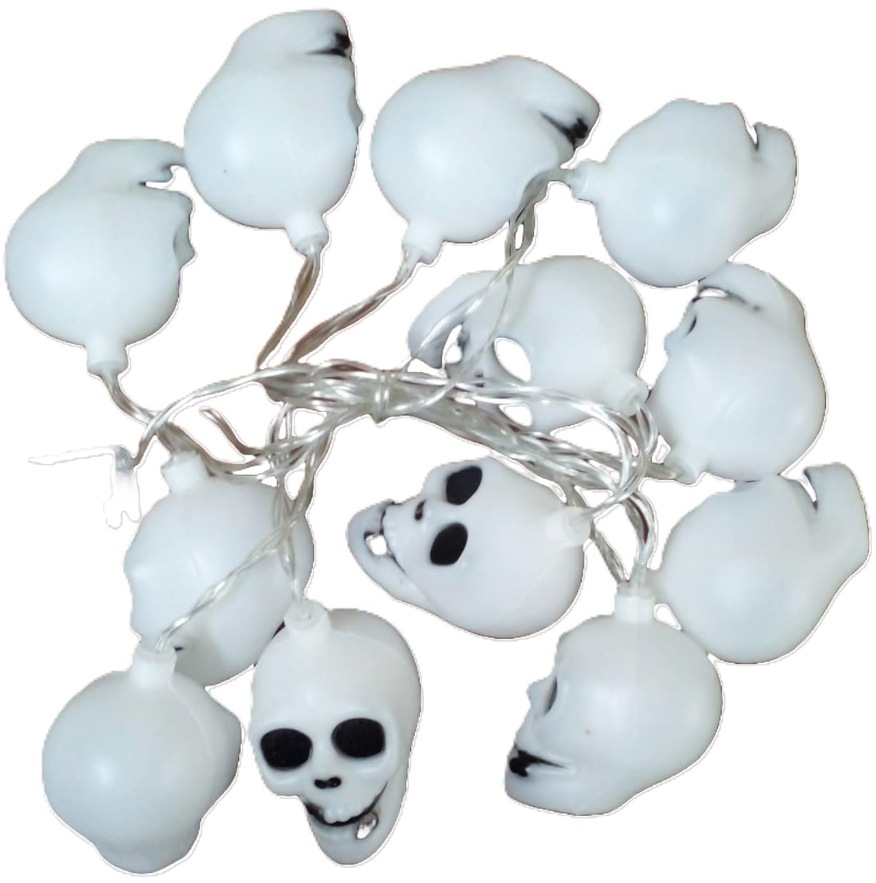 MPS My Party Suppliers 12pc Halloween skull lights, battery operated outdoor halloween string lights, Decorative Skeleton Light Ornament for halloween, happy halloween lights, halloween skeleton decor