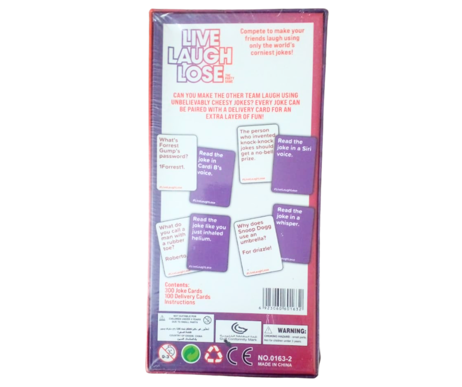 Package Contains: 1pc Live Laugh lose Card Game This party game is the perfect addition to a hilarious family game night Compete against friends and family to deliver the corniest jokes of all time and make the opposing team laugh. Encouraged to be played with 2+ players. Family Entertaining Board Game Travel Games || card game for family || card games for family night || card games to play with family || board games for family || play card games for friends and family || card family games || card games for families || card games for family and friends || card games for family game night || card games for family vacation || card games for family with cards || card games for house party || card games for the whole family || card games happy families || card games ideas for families || different card games for family || easy card games for family || family card games || good card games for family || simple card games for family || card games for ladies || card games for women’s groups || for the girls card games || ladies playing cards || popular card games || popular women’s card games || simple fun card games for adults || simple games for ladies