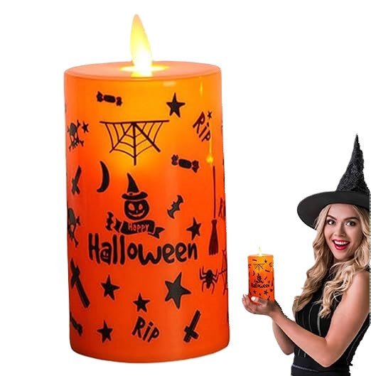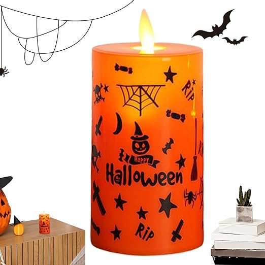 - Package Contains: 1pc Orange color Halloween LED Candle with Happy halloween print. Good for a festive and mysterious celebration, bringing the ultimate Halloween experience to life. Halloween is around the corner, start ordering your favourite decor to decorate your home, office, balcony etc. halloween pumpkin candle || halloween pumpkin decoration || halloween celebrations || Decoration for halloween || halloween candle props || Tea Light Candles