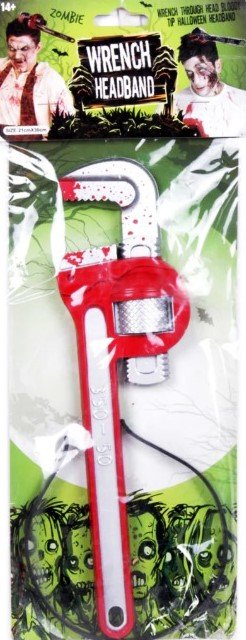 - The horror hair bands are lightweight and durable, you can wear them comfortably and use for long time. The Perfect Way to add some Spook to your Halloween Costume. Wrench headband is painted theatrically with artificial blood on the blades in order to look as realistic as possible. Little Zombies love wearing these Super Creepy Accessories!