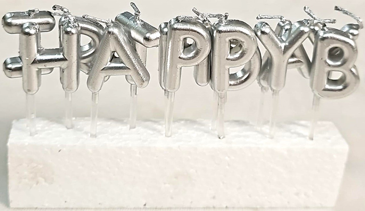 MPS MY PARTY SUPPLIERS® Happy Birthday Candles for Cake Glitter Birthday Candles for Gifting (Silver)