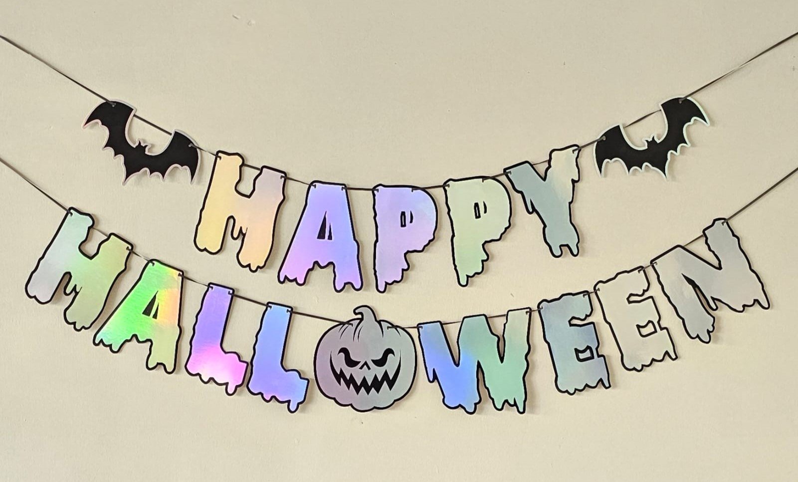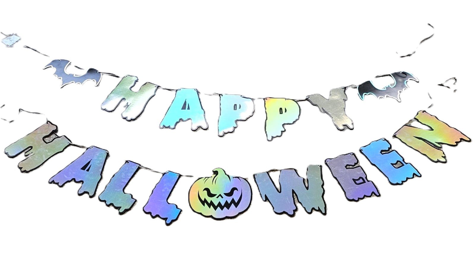 - hang this holographic happy halloween letter banner in your home, office etc to celebrate