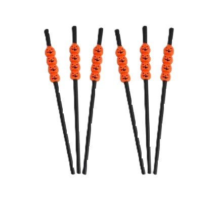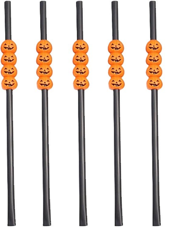 MPS My Party Suppliers Party Paper Straws for Halloween Theme Party, Halloween Pumpkin Accessory, Pumpkin Ghost Skull Paper Straws, Home and Kitchen Item (Black-Orange Pumpkin Straw)