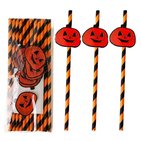 - Halloween party suit is dominated by traditional orange and black, which incorporates all popular elements of Halloween: Haunted House, pumpkin, witch, cat, Ghost, skeleton and bat. Unique and comprehensive design of Halloween Paper Straws creates a full Halloween atmosphere, which can make your party more interesting and attractive.