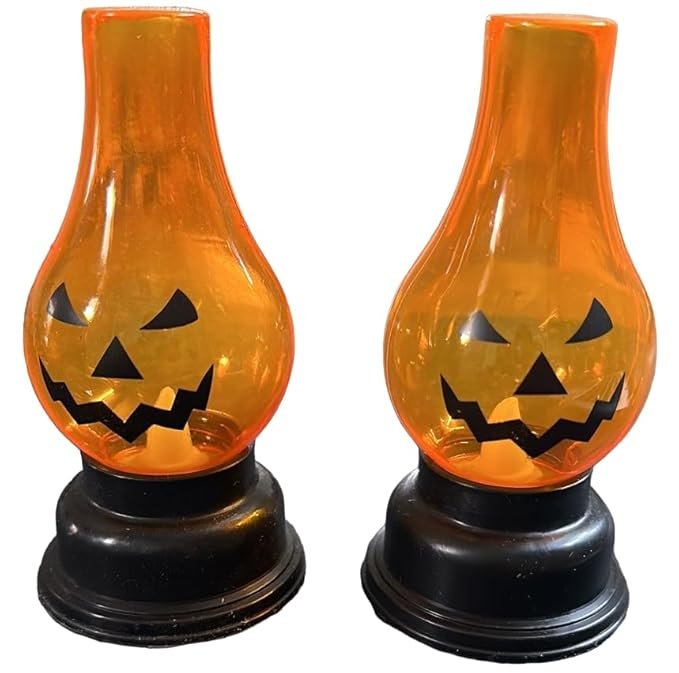 MPS My Party Suppliers Set of 2 Halloween Lamps, Halloween laltern, LED for Halloween Decoration, Halloween Hanging Decoration (Orange Pumpkin Bulb lamp)