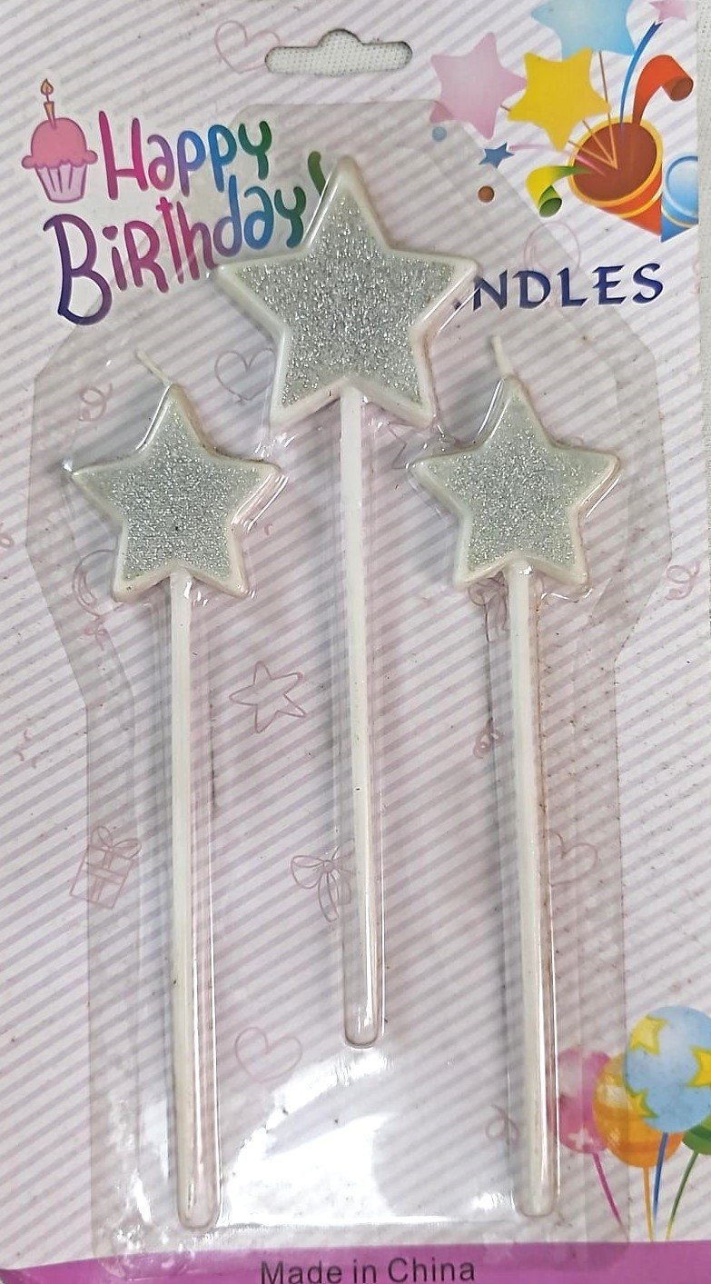 MPS MY PARTY SUPPLIERS® Set of 3 Birthday Cake Candles for Kids, Cake Topper Candles for Kids Birthday Celebration (Silver Star)
