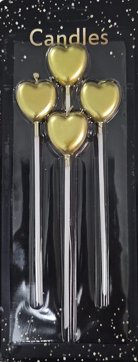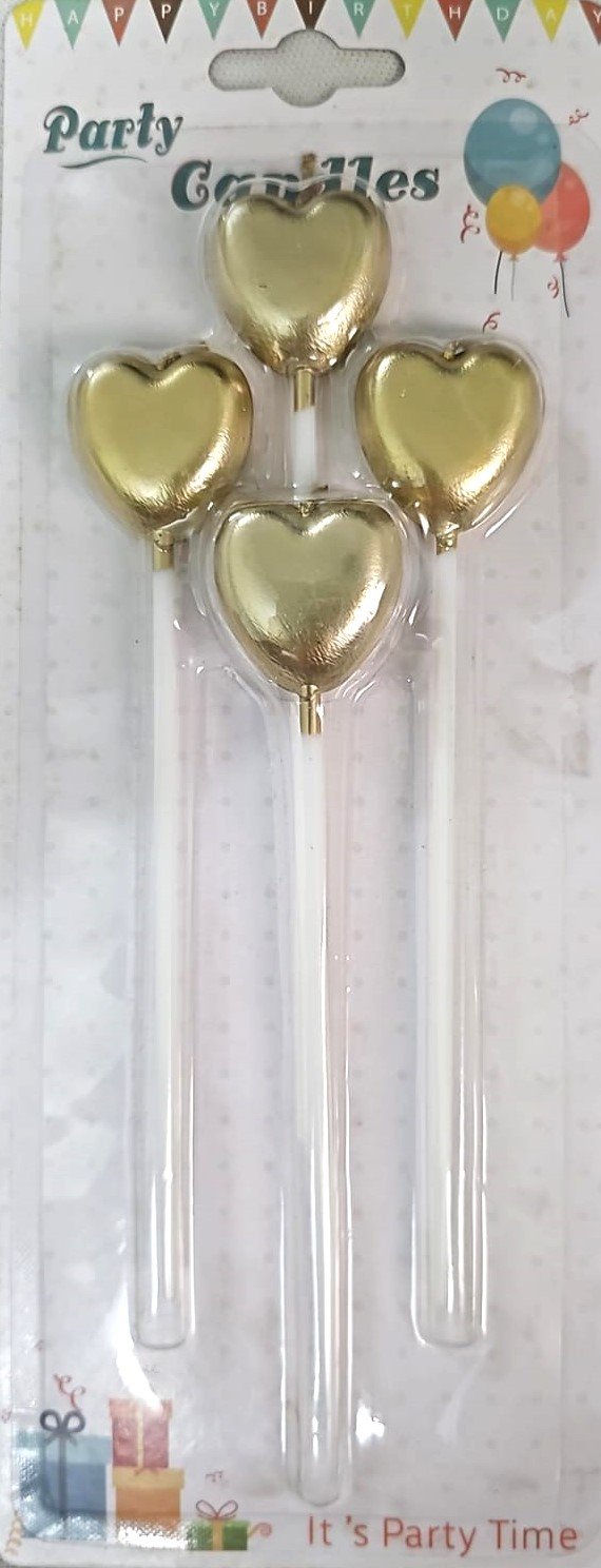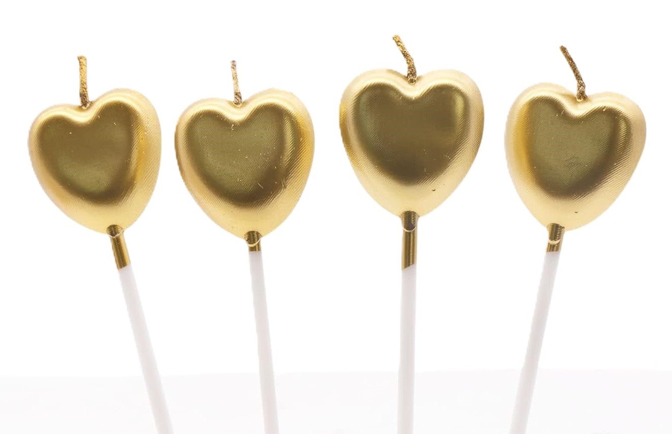MPS MY PARTY SUPPLIERS® Set of 4 Birthday Candles for Cake Cartoon Candles Set for Gifting & Home use (Golden Heart)