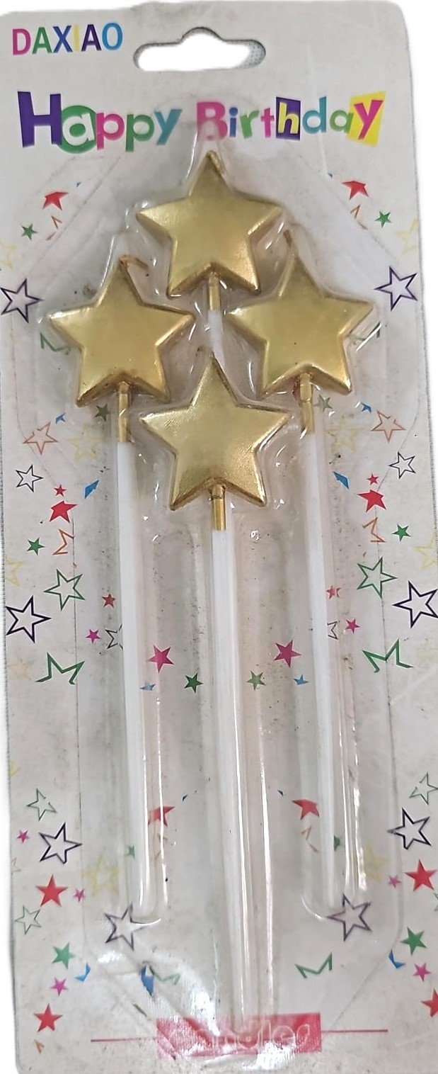 MPS MY PARTY SUPPLIERS® Set of 4 Birthday Candles for Cake Cartoon Candles Set for Gifting & Home use (Golden Star)