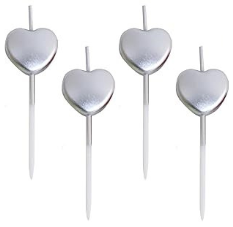 MPS MY PARTY SUPPLIERS® Set of 4 Birthday Candles for Cake Cartoon Candles Set for Gifting & Home use (Silver Heart)