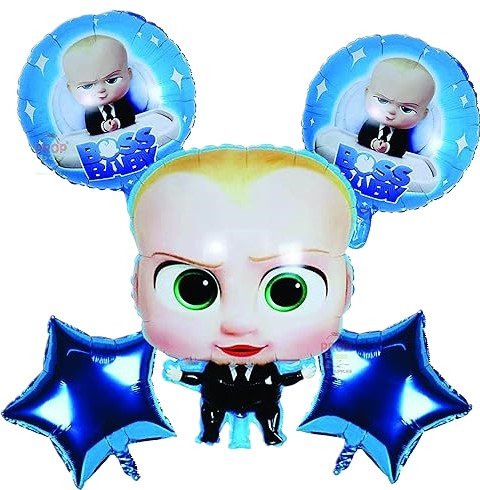 MPS MY PARTY SUPPLIERS® Set of 5 cartoon character boss baby foil balloons decorations, cartoon balloons for decoration, cartoon character balloon decoration ideas, cartoon theme (blue)