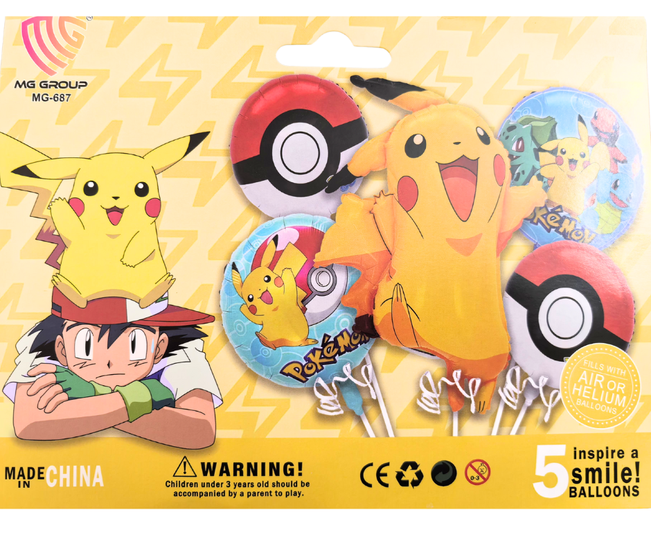 MPS MY PARTY SUPPLIERS® Set of 5 Pikachu foil balloons, Cartoon Character Foil Balloon for Kids Birthday Decoration Foil Balloons Decoration for Boys Girls Children Toddlers