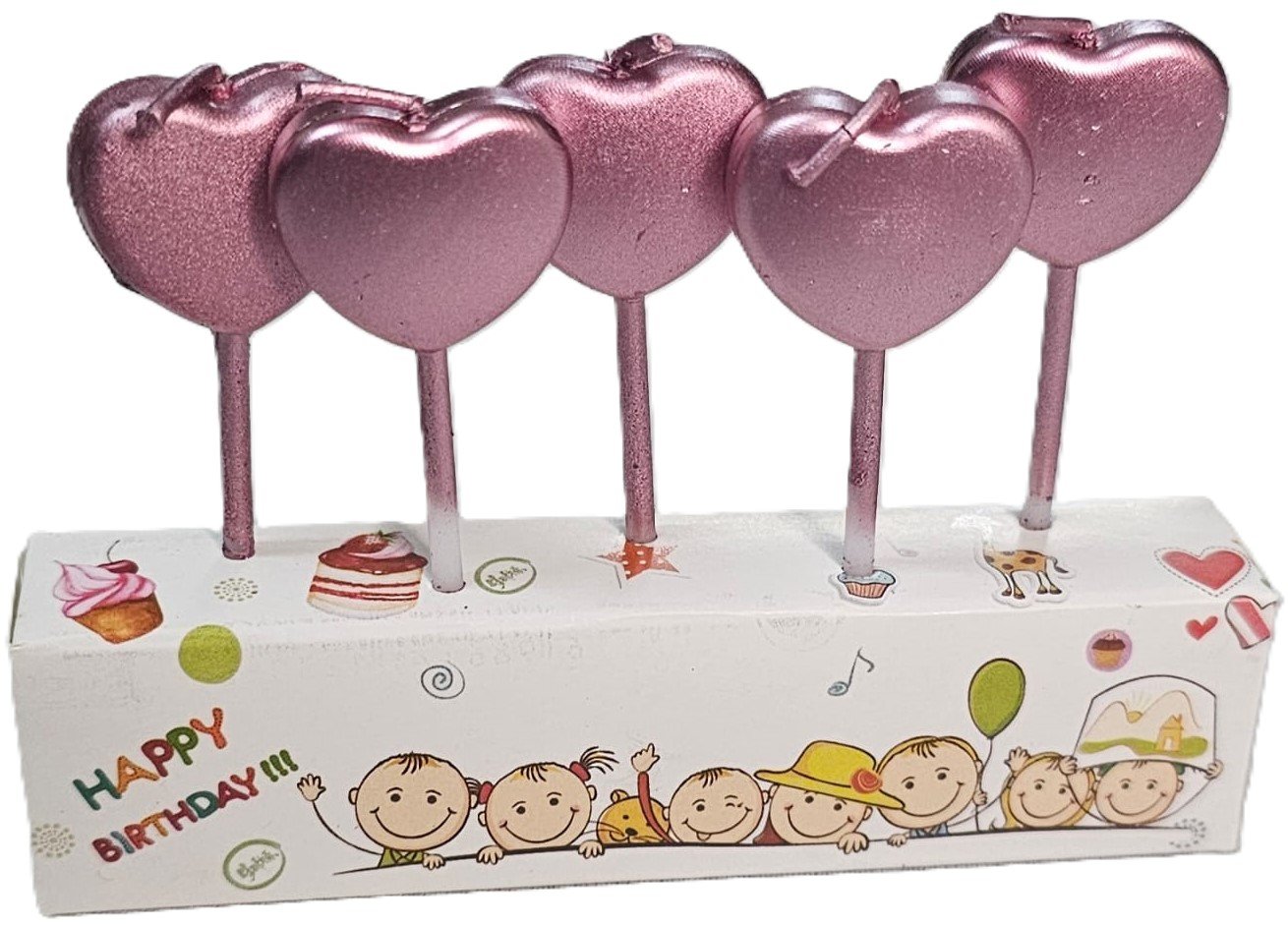 MPS MY PARTY SUPPLIERS® Set of 5 Pink Heart Shaped Cake Candles, Cake Topper for Cake Decoration, Cupcake Toppers (Heart)