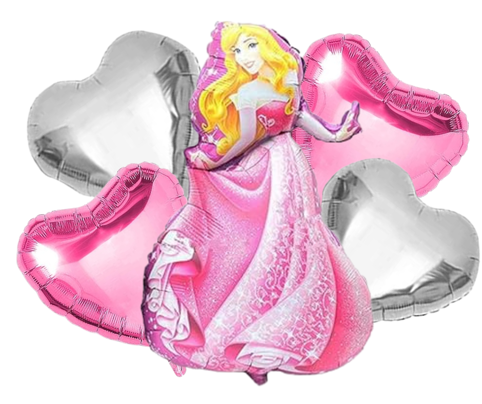 MPS MY PARTY SUPPLIERS® Set of 5 Pink Princess Foil Balloons, Princess themed party, Pink silver hearts foil balloons, heart balloon, Princess Balloons for decoration, balloons girls party (pink)