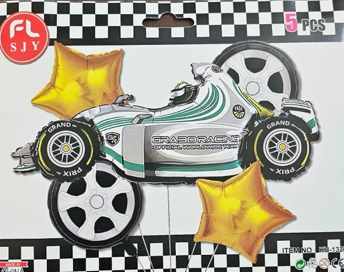 - Package Contains: Set of 5 Racing car Foil Balloons, 1pc big monster racing car foil balloon, 2pcs golden star foil balloon and 2pcs round race car wheels balloons.