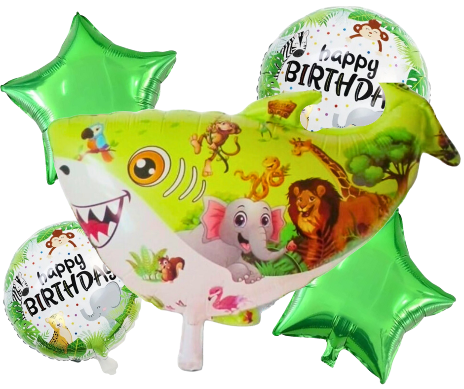 - Package Contains: set of 5 shark balloons, 1pc big shark foil balloon with animals print on it, 2pcs green heart foil balloons and 2pcs round balloons with happy birthday print on it. fish foil balloon decoration ideas || fish foil balloon design || fish foil balloon for birthday || fish foil balloon ideas || giant shark balloon || large shark balloon || shark balloon || shark balloon animal || shark balloon decoration || shark birthday balloon || shark party balloon || shark shaped balloon