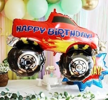 - Happy Birthday Print: The monster car balloon proudly boasts a “Happy Birthday” message, making it an ideal focal point for your celebration. It sets the mood for a joyous and memorable birthday bash.