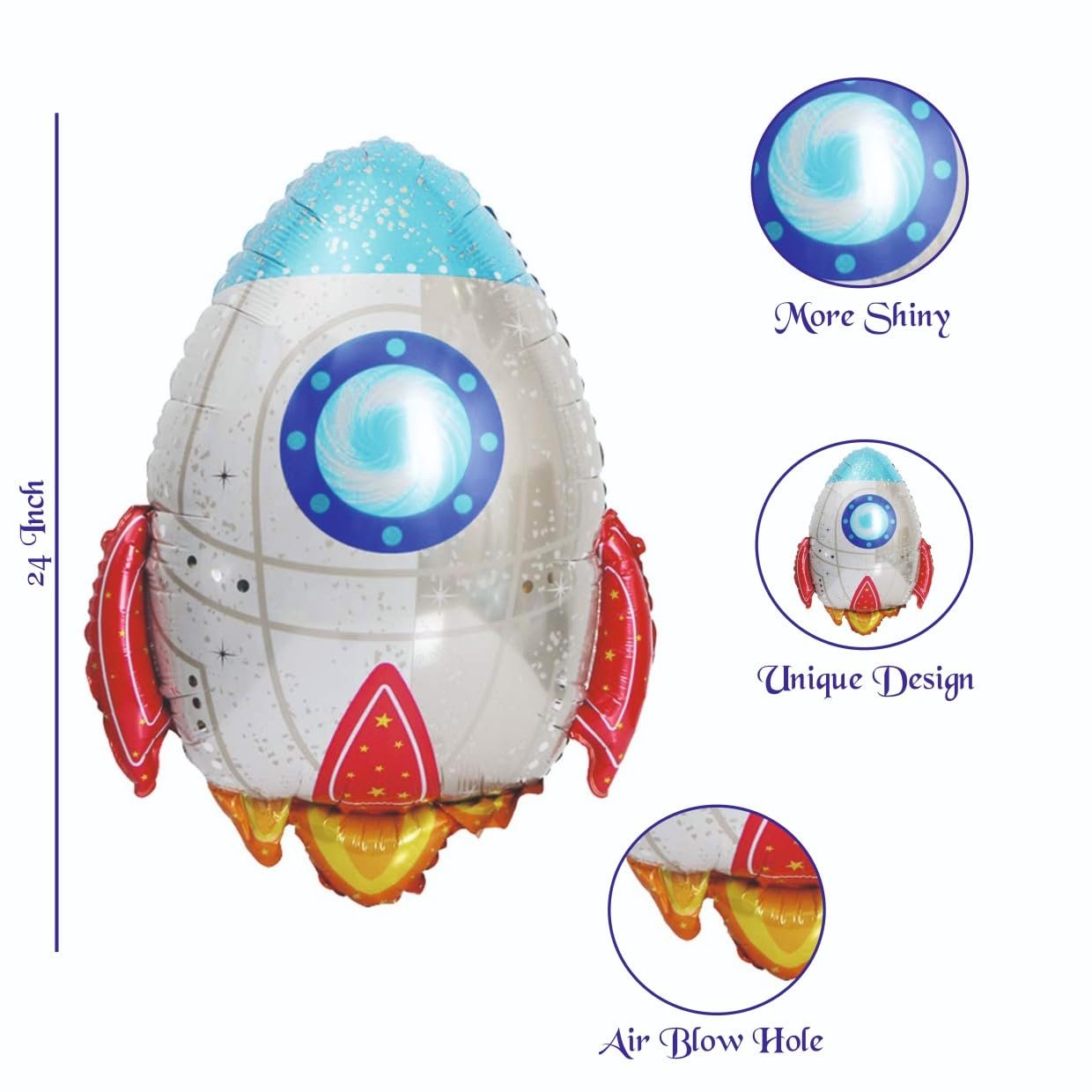 - Package Contains: Set of 5 Rocket theme birthday Foil Balloon 1 big size rocket balloon, 2 silver color star balloons and 2 black round shaped balloon with birthday and astronaut print.