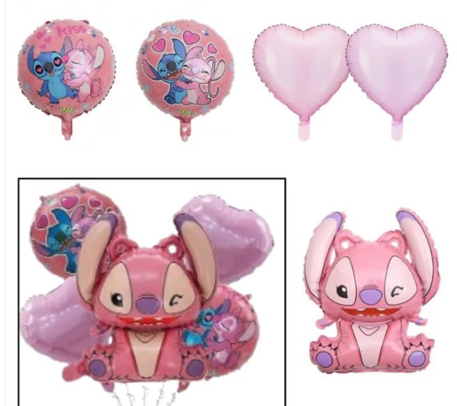 Pink Stitch Foil Balloon Set – Cartoon Birthday Party Decoration