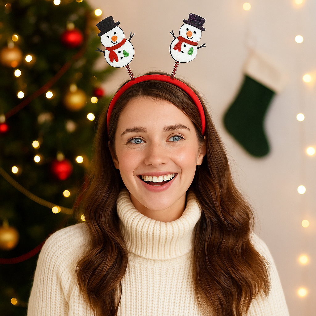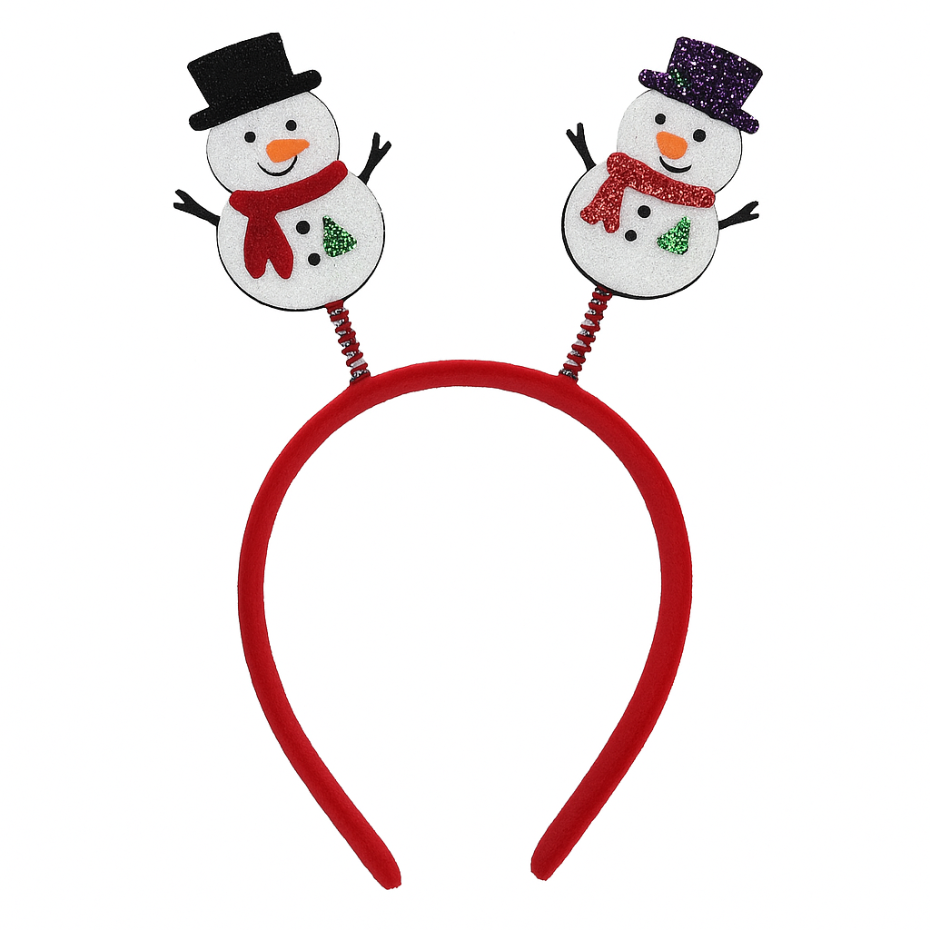 Add a joyful winter touch to your Christmas celebrations with this Set of 2 Snowman Headbands by MPS MY PARTY SUPPLIERS. Each headband features adorable glitter snowman toppers with scarves, hats, and cute details—mounted on spring antennas that bounce playfully with movement. Designed using a soft velvet-covered headband, these are comfortable for kids and adults, making them perfect for Christmas parties, school functions, holiday gatherings, office events, Santa-themed shoots, and festive dress-up. The bright colours and glitter finish make these snowman headbands a fun and eye-catching accessory for spreading Christmas cheer.