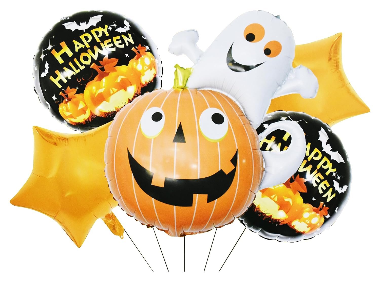 Set of 5 Pumpkin ghost with black stars halloween balloons Halloween theme foil balloons decorations Kids halloween party supplies Balloon decoration