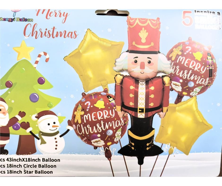 - Package Contains: Set of 5 nutcracker christmas foil balloon 1pc Self Standing nutcracker foil balloon of 43*18inch, 2 pcs star balloons 18inch and 2 pcs red circle balloons 18inch with merry christmas print christmas foil balloon office || christmas tree foil balloon || merry christmas balloon decoration || merry christmas foil balloons || mini foil christmas balloons || xmas balloons || xmas foil balloons || christmas foil balloons || christmas balloon || christmas balloon decoration || christmas balloons for decoration || birthday balloon || christmas balloon santa ||