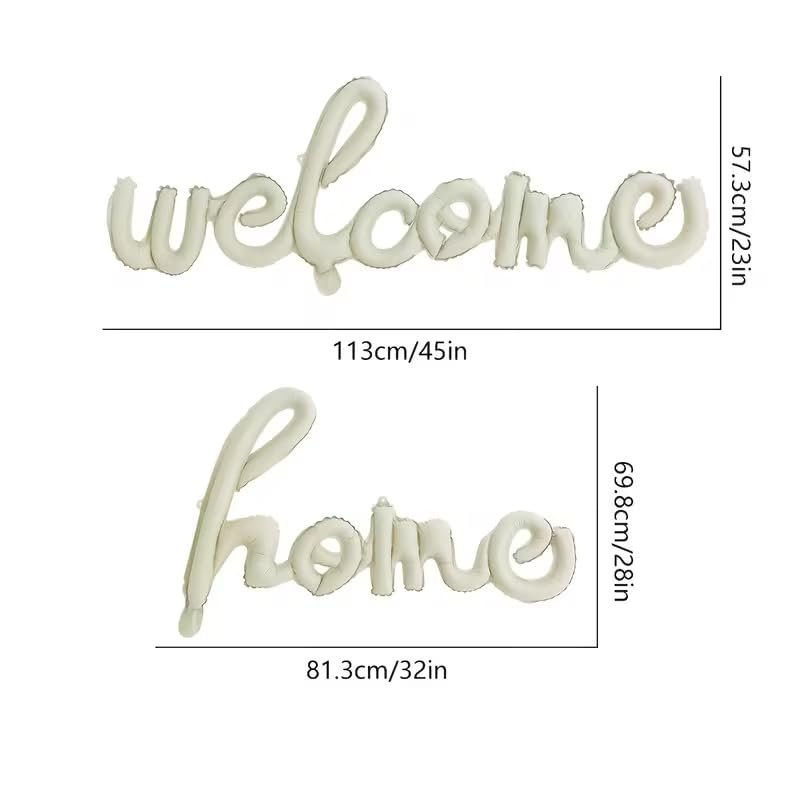 - SCRIPT DESIGN: Elegant cursive foil balloons spelling “welcome” and “home” in connected letter format, creating a sophisticated and eye-catching display for your celebration