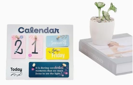 - ⭐ Colorful Month & Day Display – Eye-catching bright cards add a pop of color to your desk, making date updates clear and fun. inspirational quote perpetual calendar for home office workstation. reusable date display desk calendar with wooden flip cards