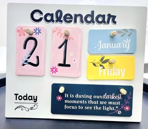 - CUSTOMISABLE DISPLAY: Features interchangeable number cards for dates (1-31), month cards, and day of the week cards, allowing you to update your calendar daily
